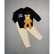 2-3-4 Yaş Ayıcık Sallanan Ayak Desenli Likra Penye Kumaş Sweat Pantolonlu Kız Erkek 2li Çocuk Takımı Siyah