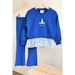 2-8 Yaş Unicorn Çiçek Detay İspanyol Kız Çocuk Takım Mavi Mavi
