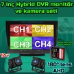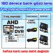 2 Adet 1080p Ahd 180 Derece Balık Gözü Kamera 7 İnç 256 Gb Destekli Hybrid Dvr Monitör 12 Volt