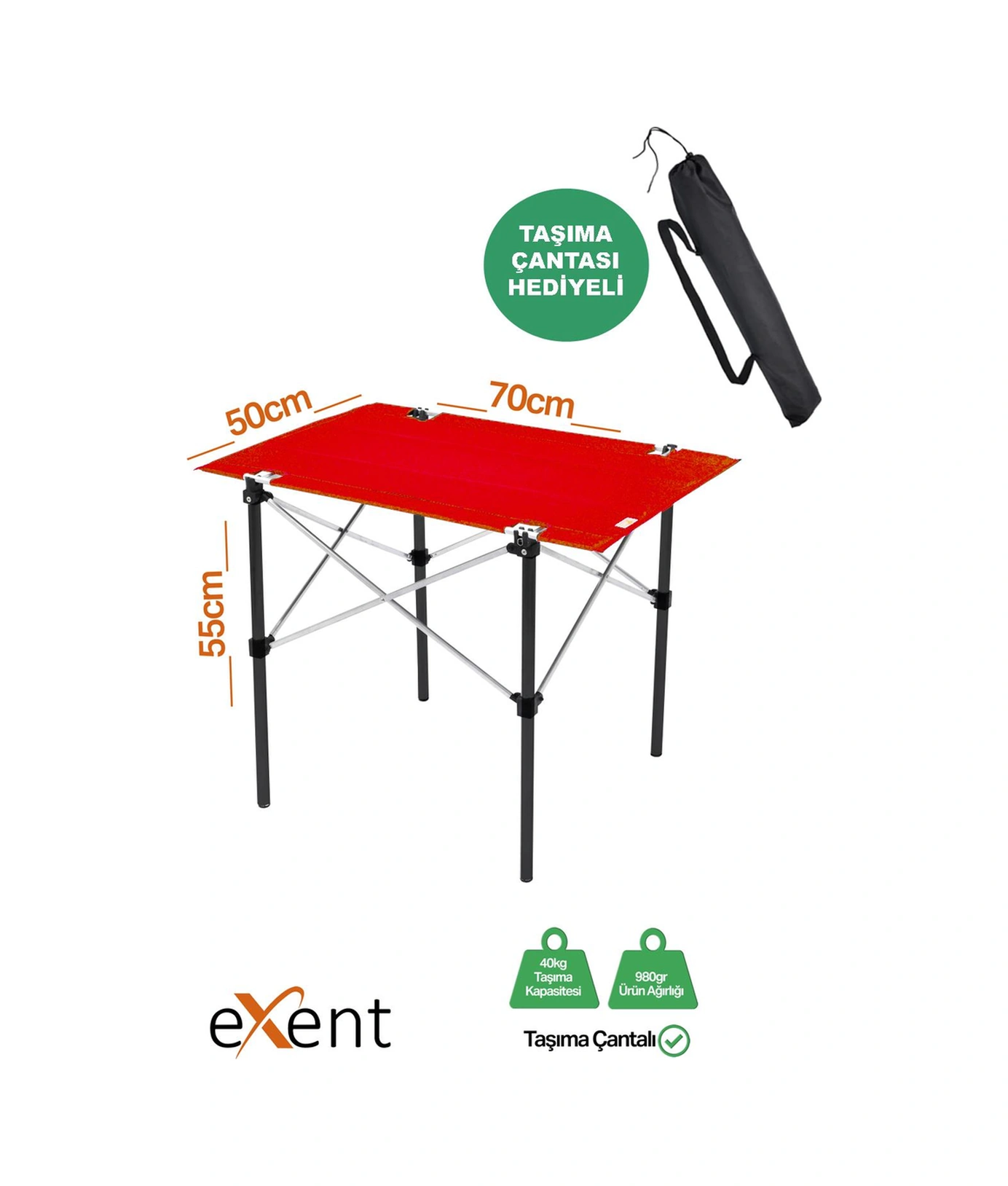Exent Full-Alüminyum Yanmaz- Kırılmaz Hafif Kamp-Piknik Masası 70 CM Siyah