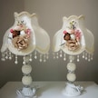 2 Adet Çiçek Dekorlu Abajur Özel Tasarım Dekoratif Beyaz