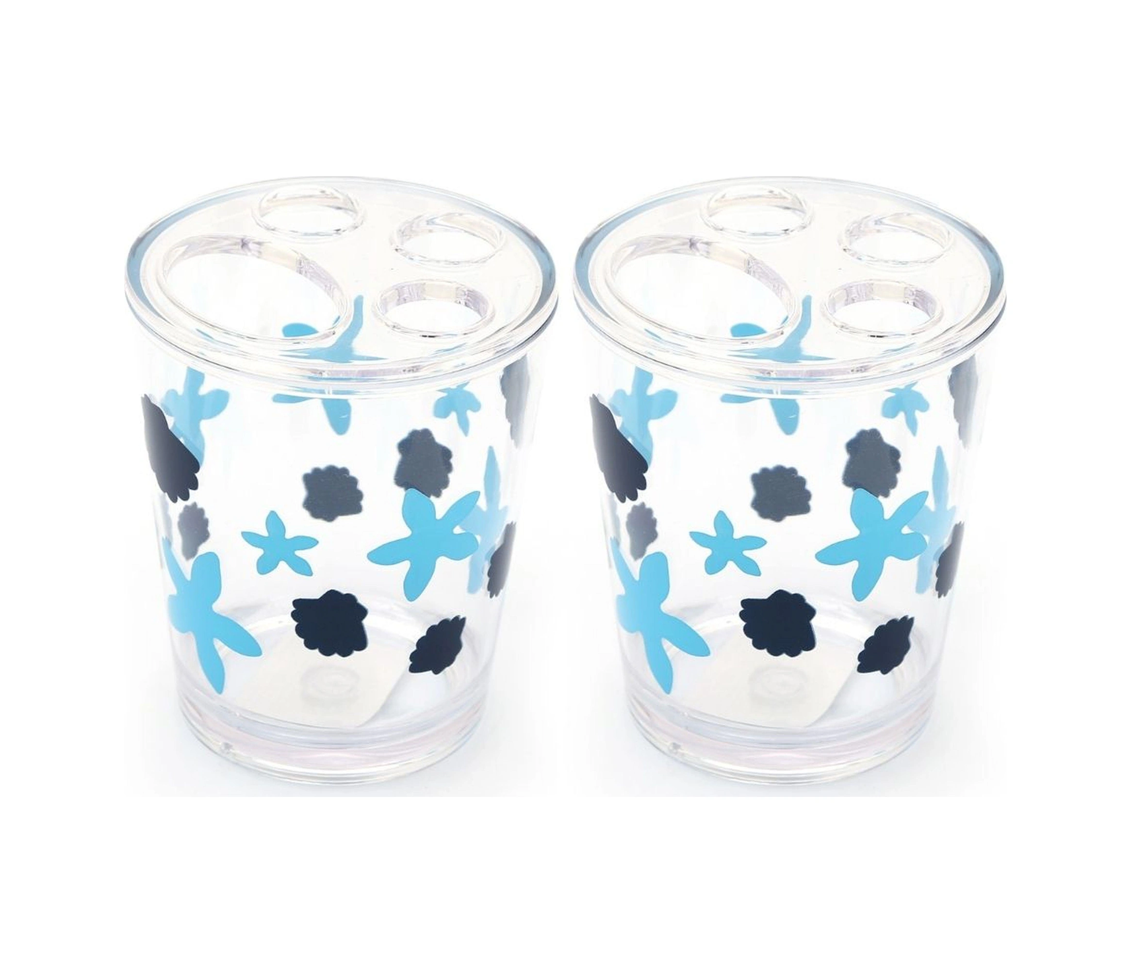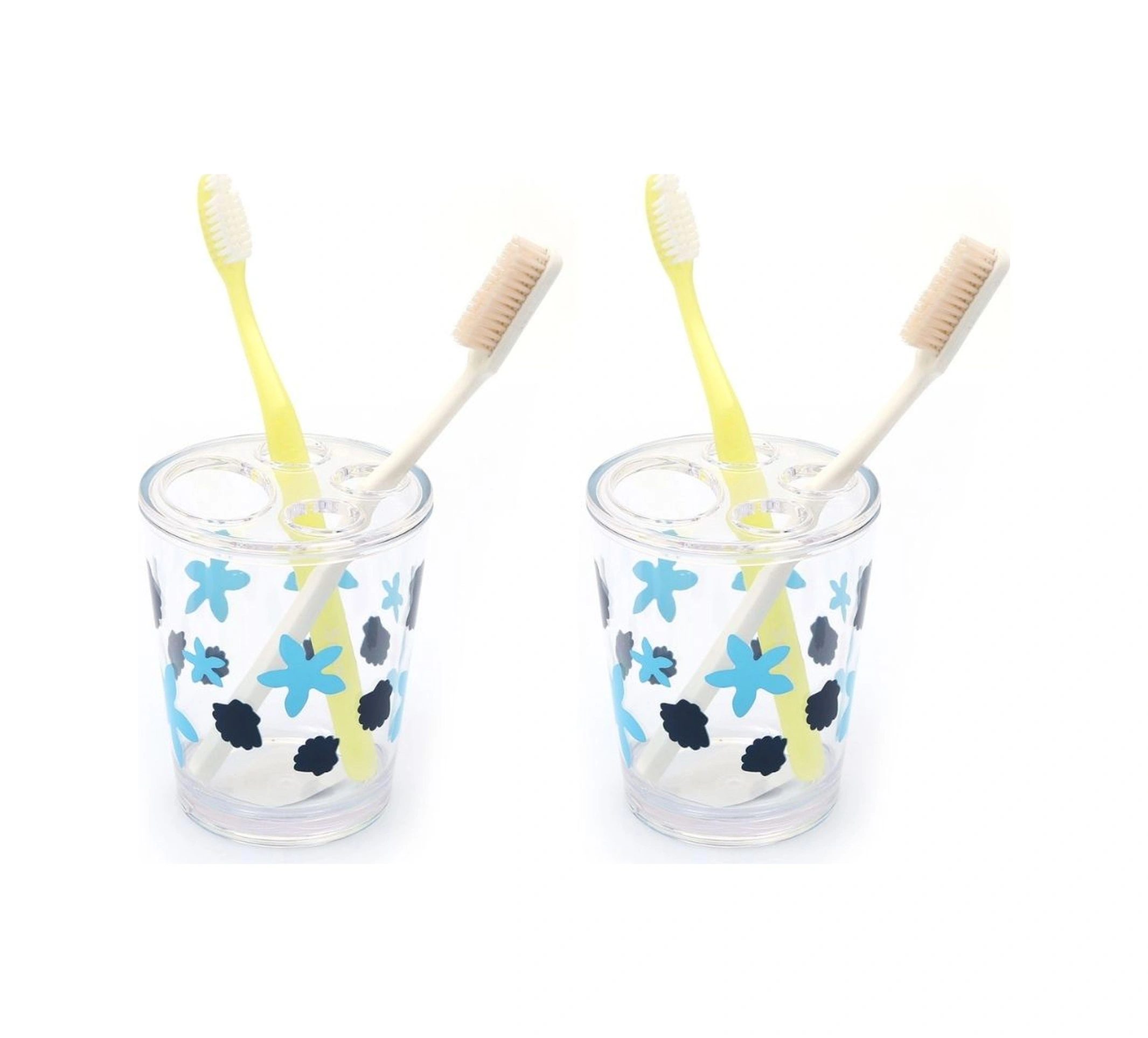 2 Adet Diş Fırçalık Benekli Desen Akrilik 8x8x9cm 350ml Banyo Seti Çok Renkli