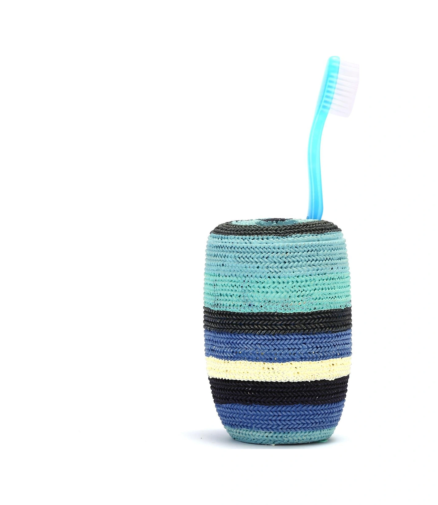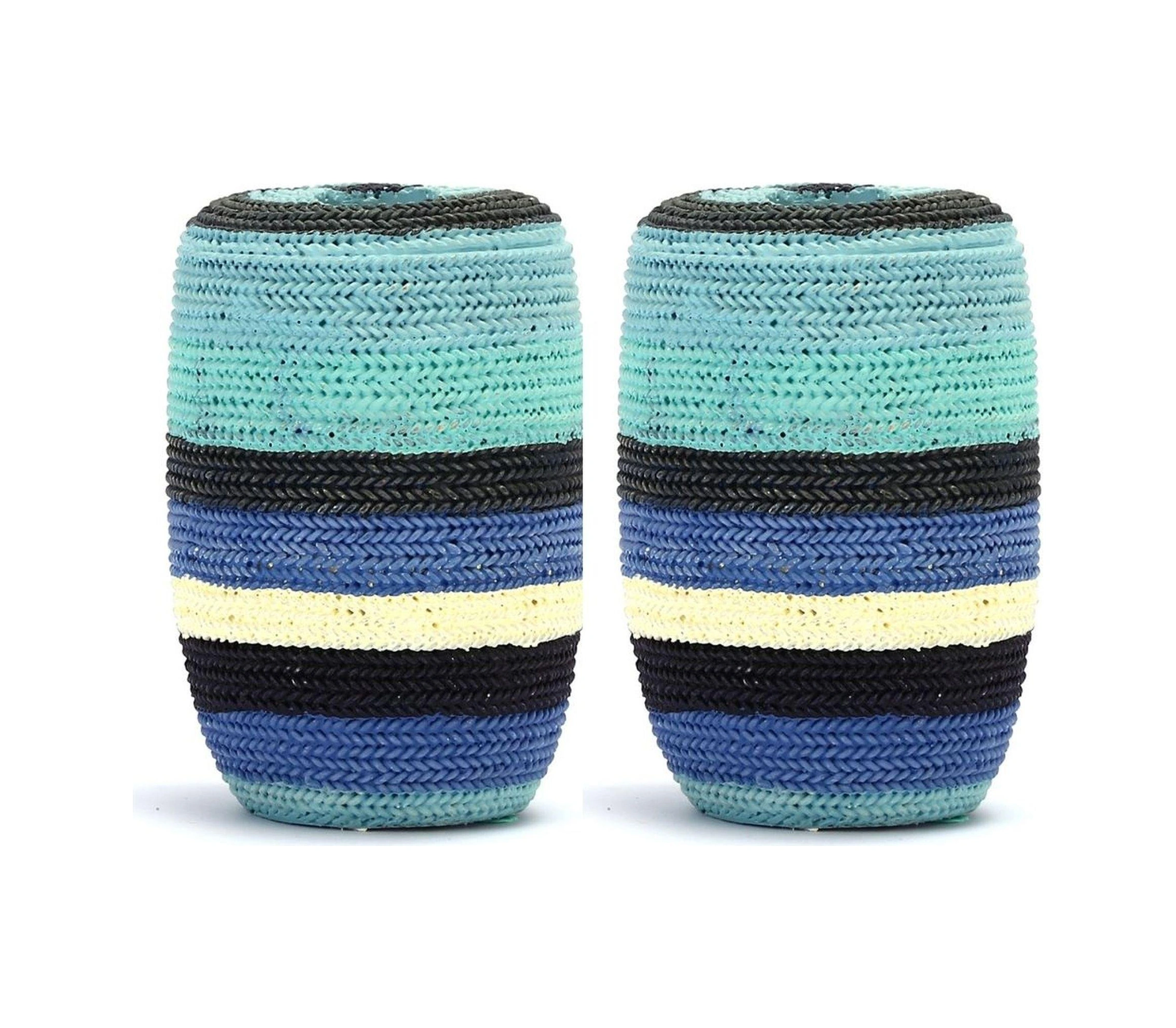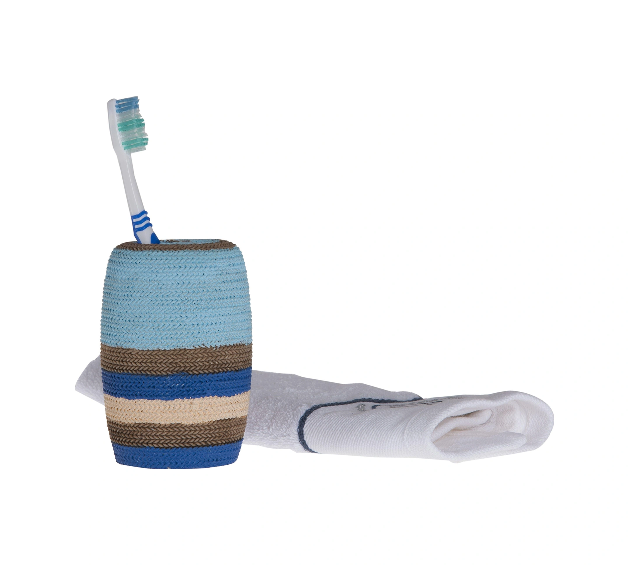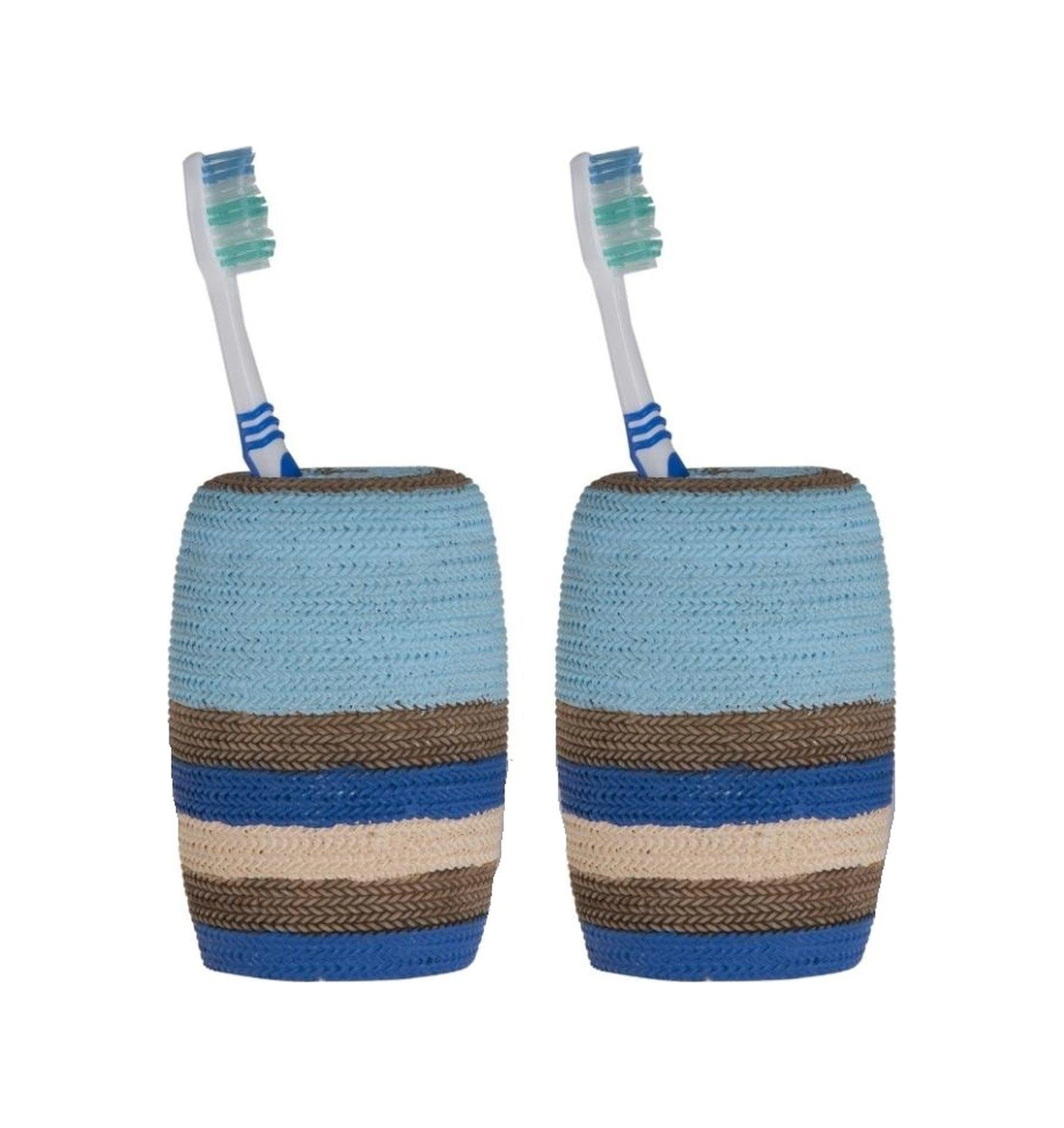 2 Adet Diş Fırçalık Mavi Örgü Poliresin 7x7x11cm Banyo Seti Çok Renkli