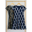 2 Adet Dökümlü Rahat Kalıp Günlük Penye Kumaş Elbise Lacivert - Krem
