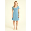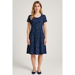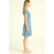 Kadın Omuzlardan Açık Daire Yaka Desenli Maxi Süprem Elbise Mavi