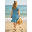 2 Adet Dökümlü Rahat Kalıp Günlük Penye Kumaş Elbise Mavi-siyah