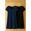 2 Adet Dökümlü Rahat Kalıp Günlük Penye Kumaş Elbise Siyah - Çok Renkli