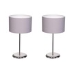 2 Adet Gri Kumaş Şapkalı Krom Kaplamalı Metal Ayak Abajur Siyah