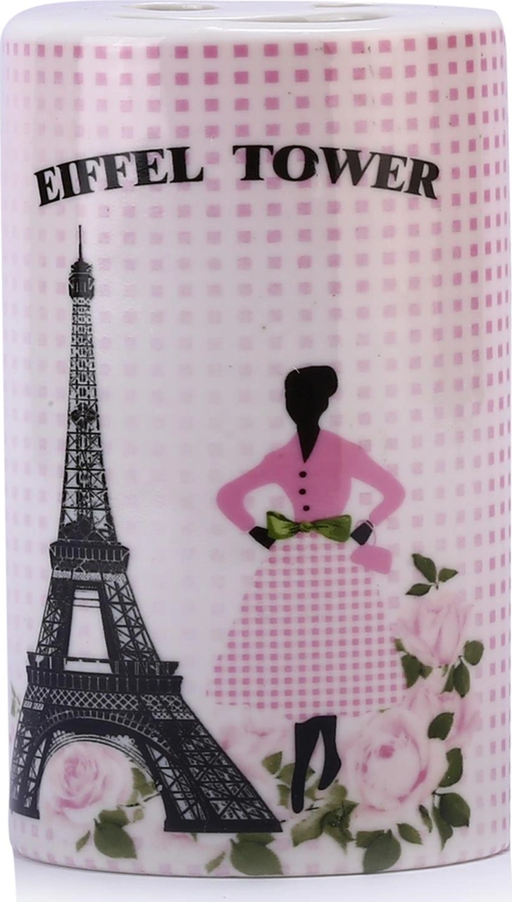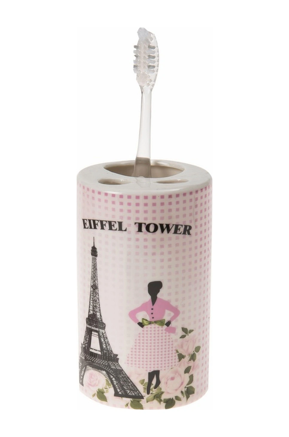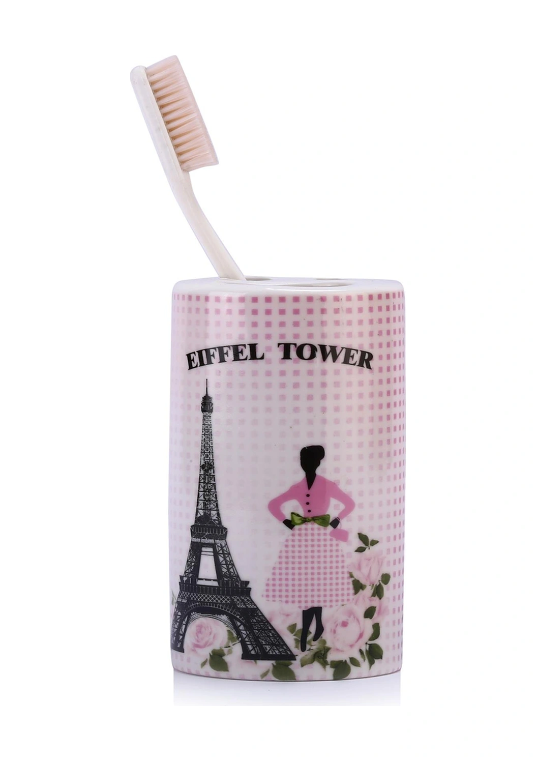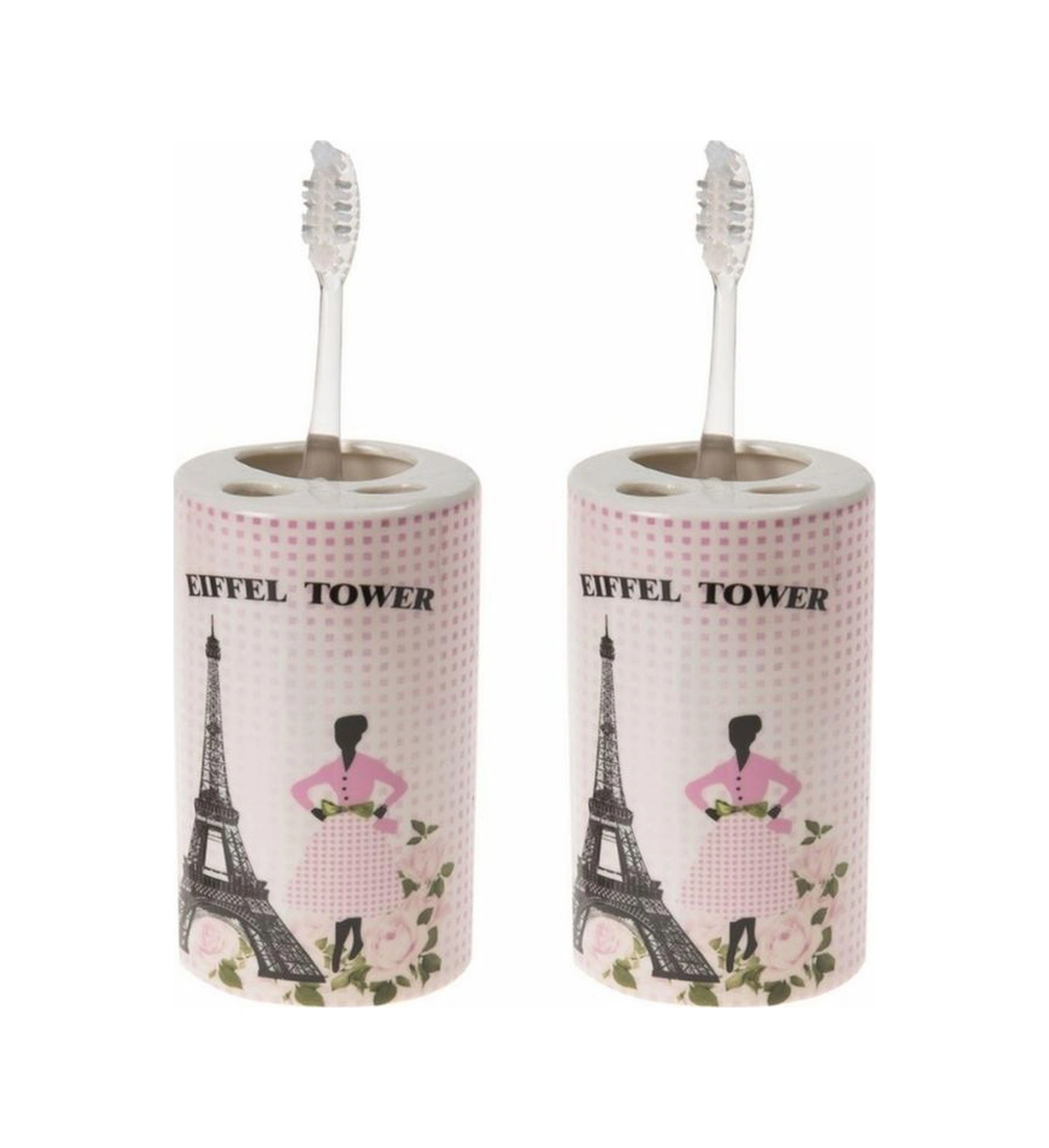 2 Adet Seramik Diş Fırçalık Eyfel Kulesi Model 7x7x11cm Banyo Seti Çok Renkli