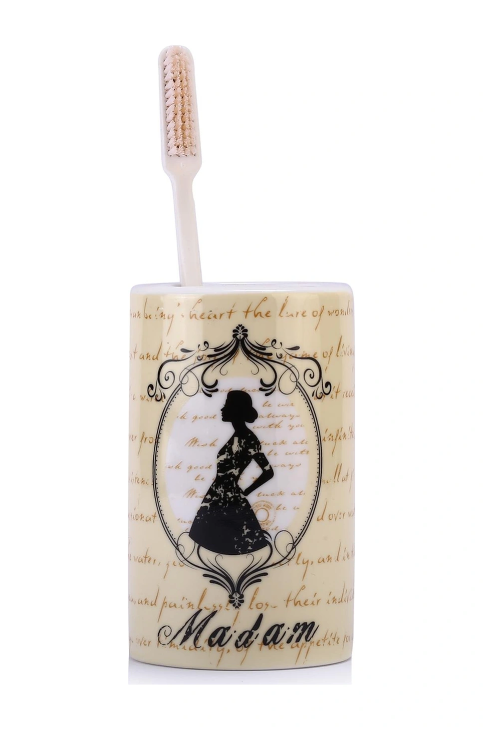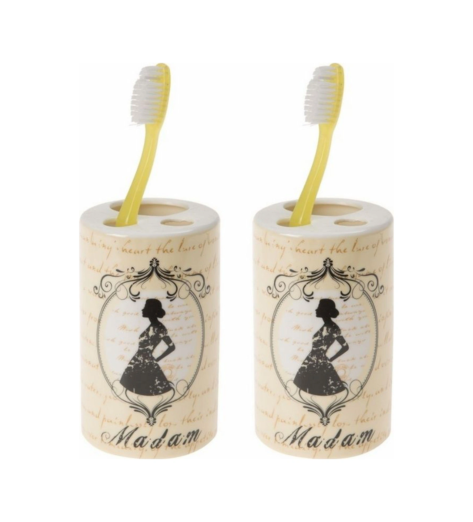 2 Adet Seramik Diş Fırçalık Madam Desenli 7x7x11cm Banyo Seti Çok Renkli
