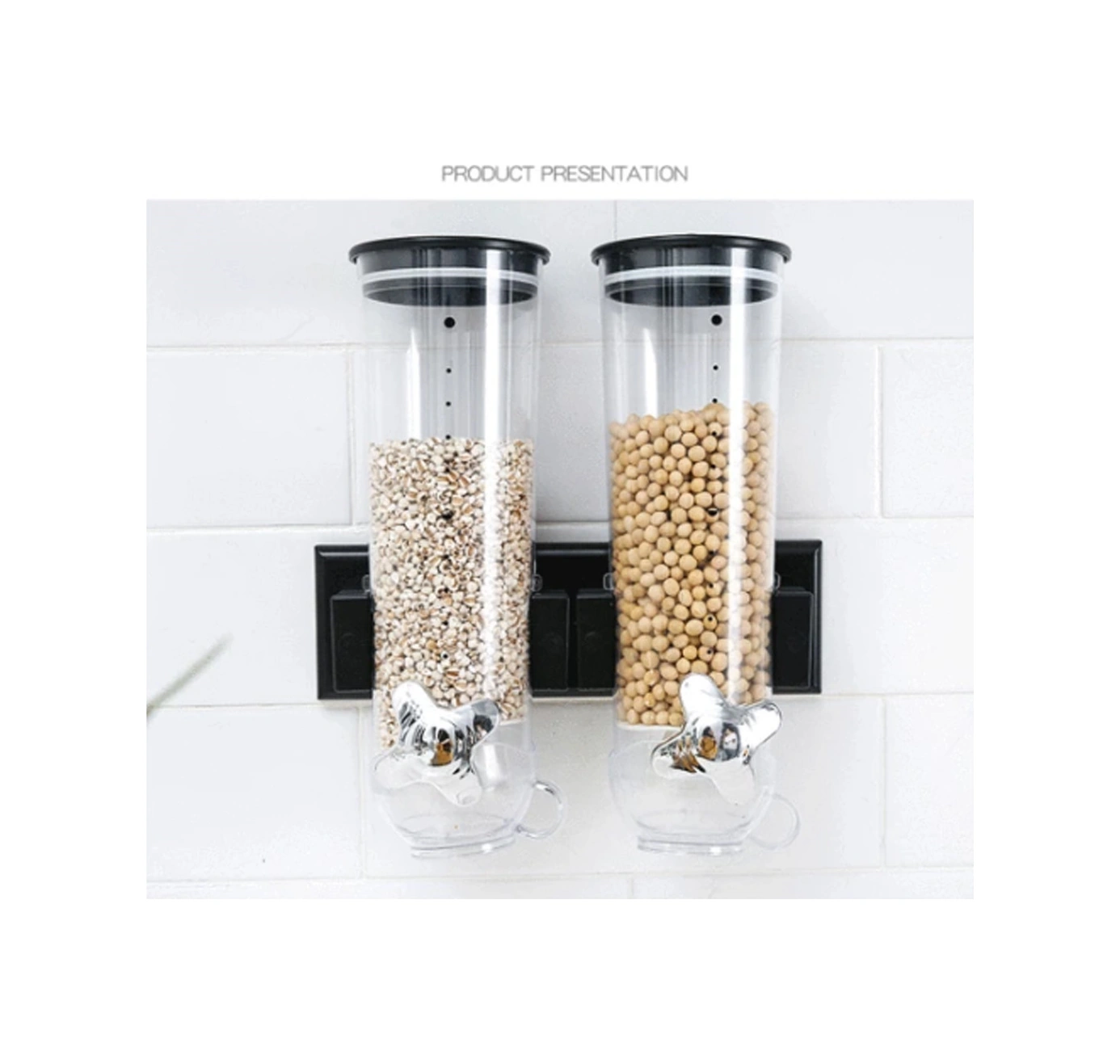 2 Adet Tahıl Dağıtıcı Çift Tek Kuru Gıda Snack Tahıl Tabanlı Plastik Depolama Konteyner Duvar Asılı Ev Organizatör Tankları Şişeler, Kavanozlar Ve Amp Kutular 3 Kaşık Klipsli