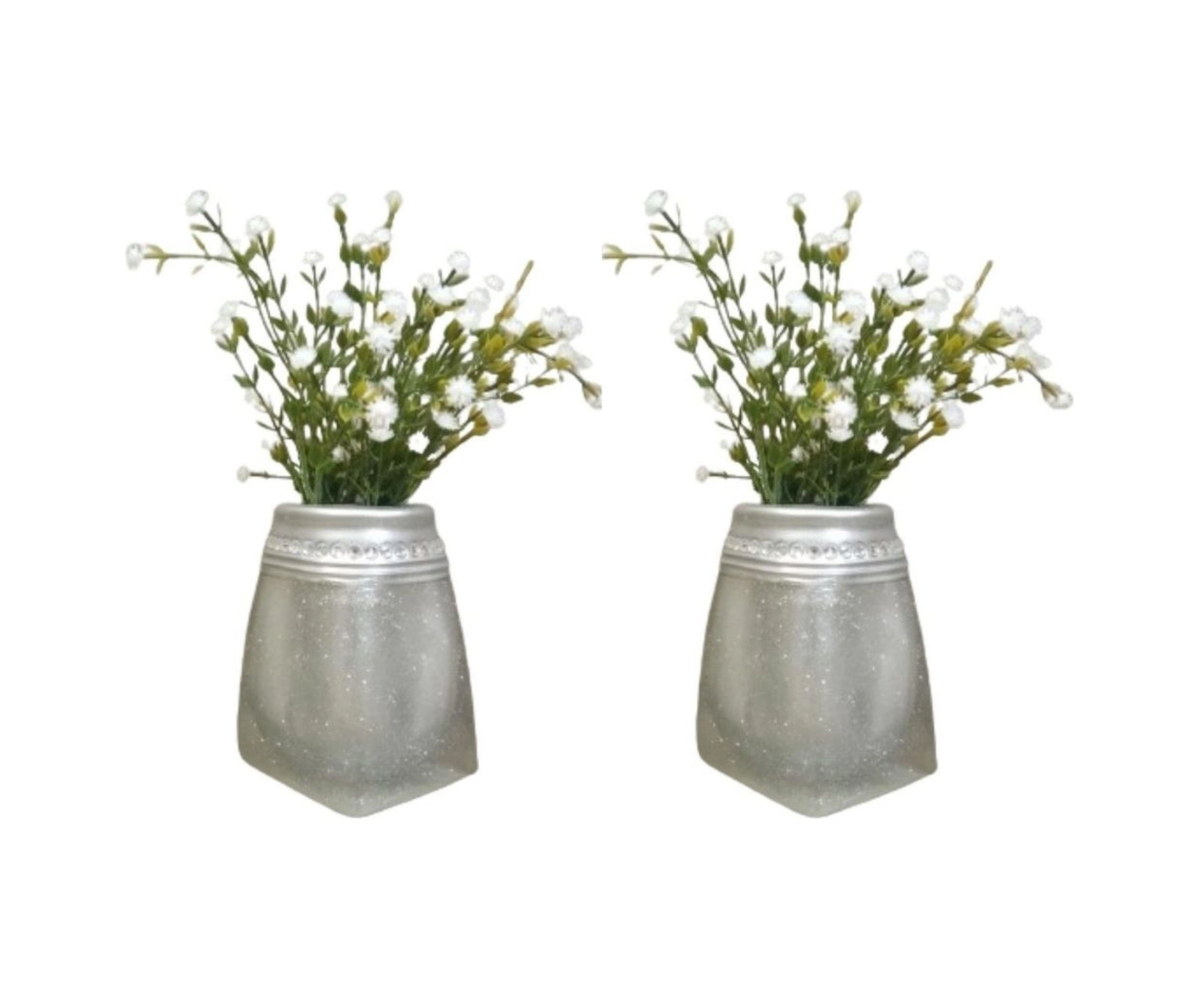 2 Adet Vazo Dahil,vazoda Çiçek,beyaz Yapay Çiçek,vazo Dekoratif Kristal Taşlı Gümüş Poliresin 7x7x15cm Çok Renkli