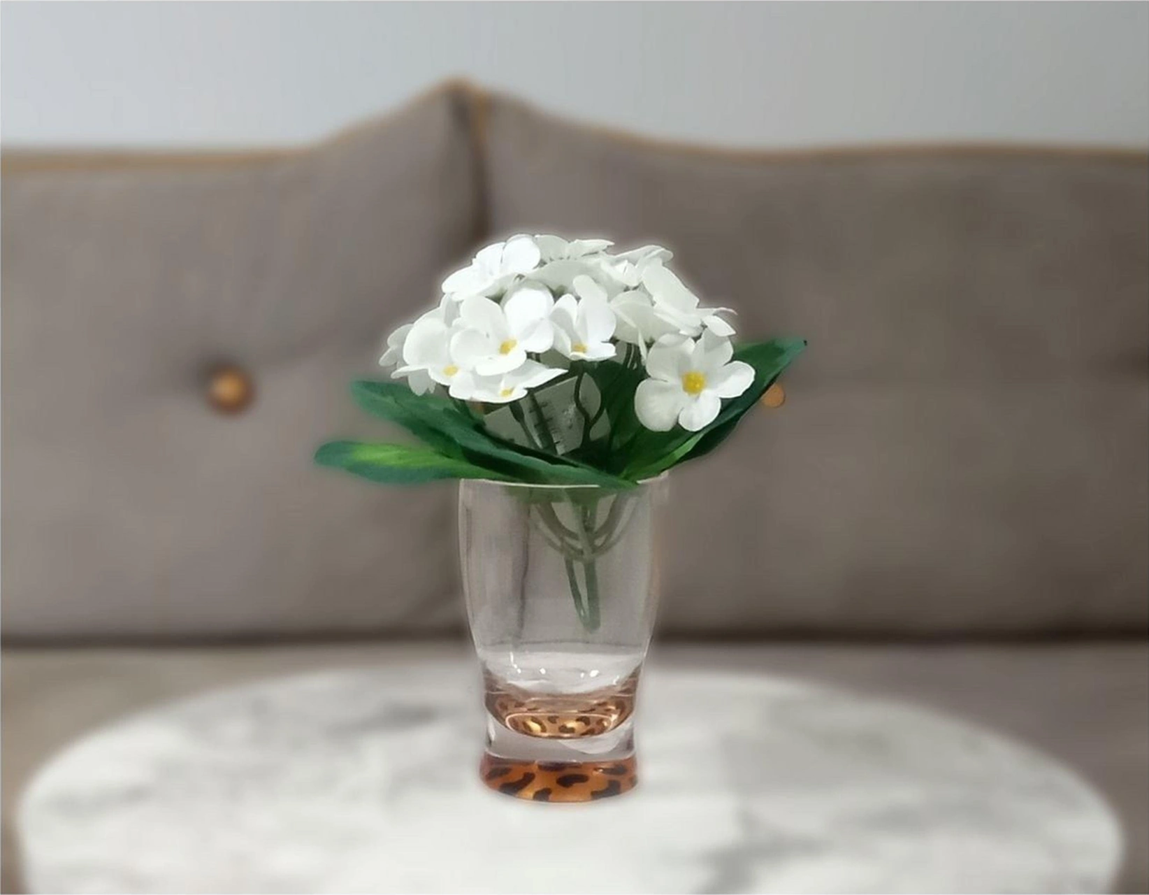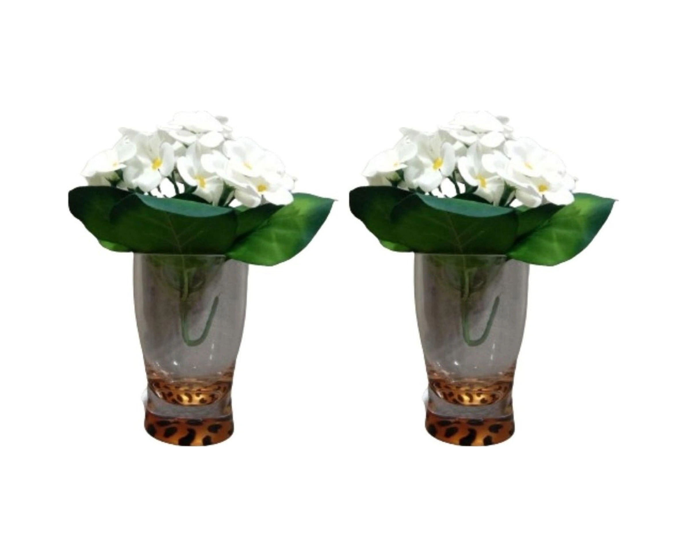 2 Adet Vazo Dahil,vazoda Çiçek,beyaz Yapay Çiçek,vazo Dekoratif Leopar 6x6x16cm Çok Renkli