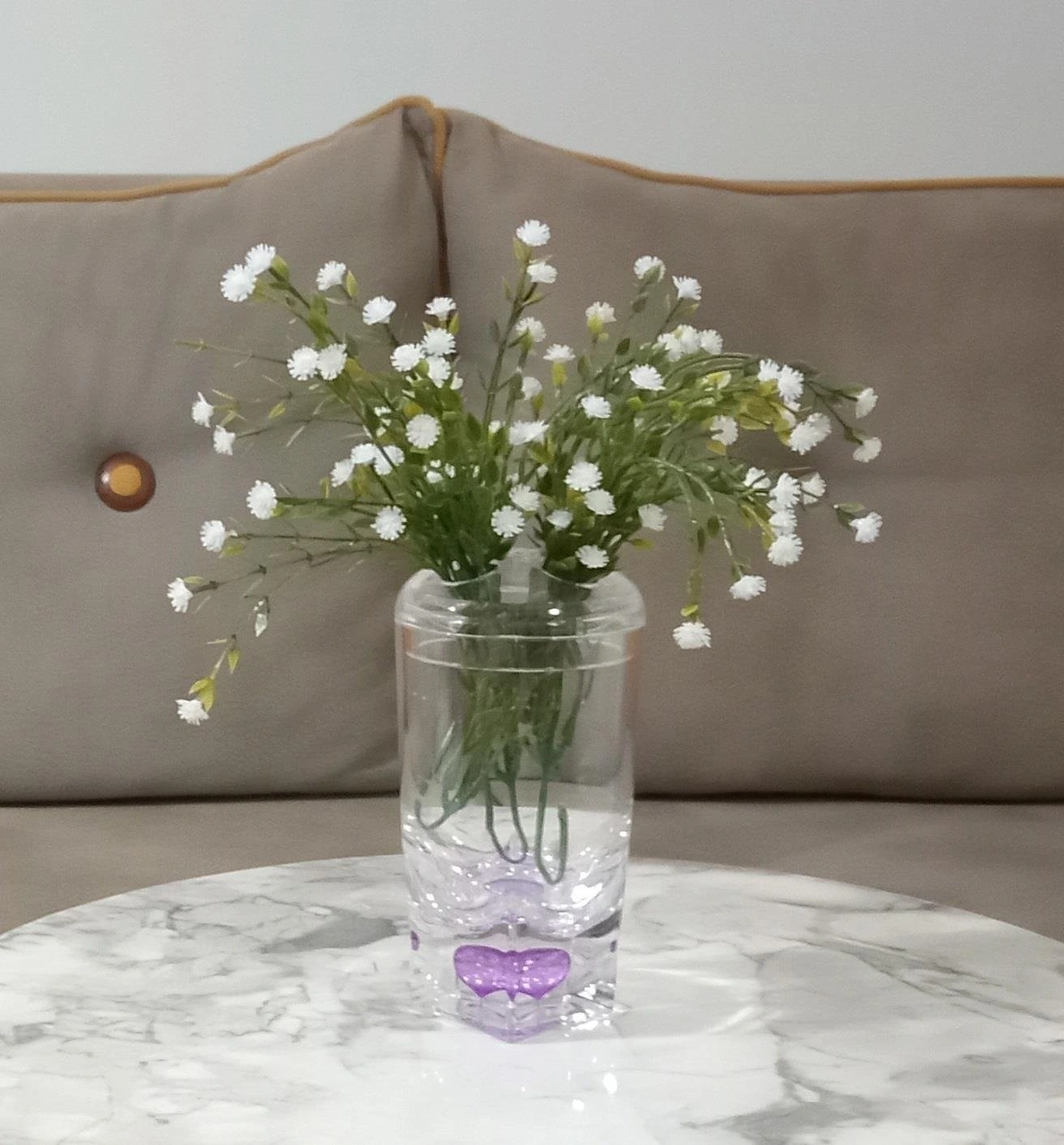 2 Adet Vazo Dahil,vazoda Çiçek,beyaz Yapay Çiçek,vazo Dekoratif Mor Damlalı 6x6x19cm Çok Renkli