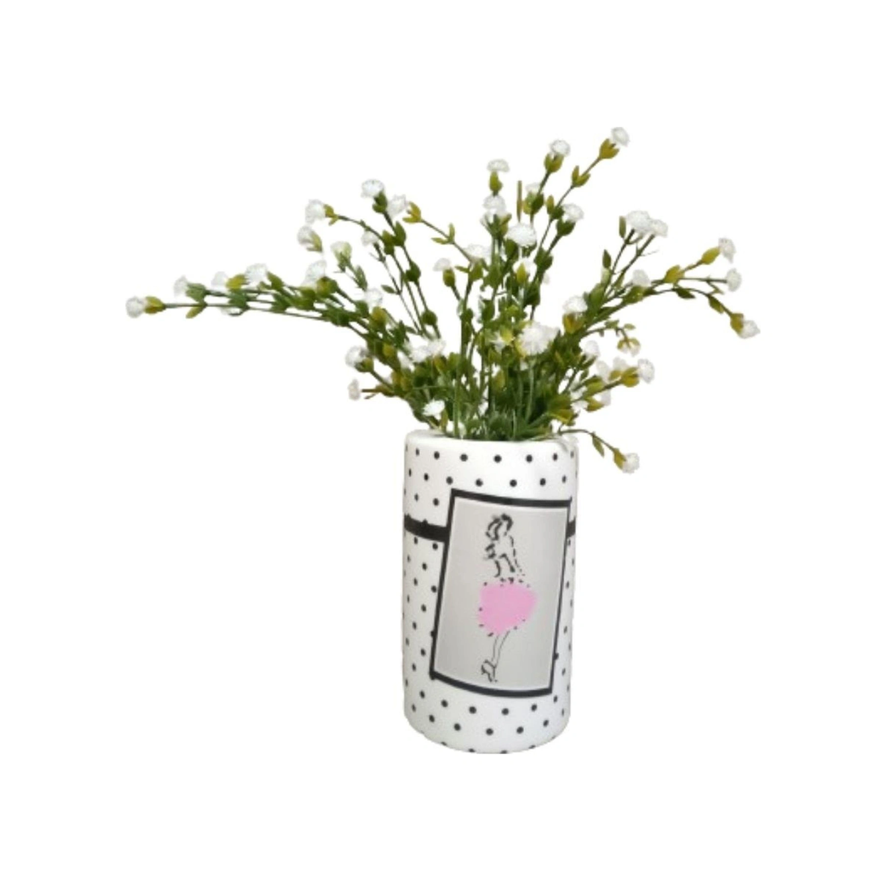 2 Adet Vazo Dahil,vazoda Çiçek,beyaz Yapay Çiçek,vazo Dekoratif Pembe Elbiseli Kadın 7x7x16cm Çok Renkli