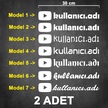 2 Adet Youtube Kullanıcı Adı Sticker - Youtube Sticker - Youtube Logo Sticker - 30cm - Beyaz
