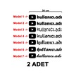 2 Adet Youtube Kullanıcı Adı Sticker - Youtube Sticker - Youtube Logo Sticker - 30cm - Siyah