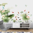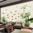 2 Adet/takım Duvar Sticker Çin Tarzı Su Geçirmez Kendinden Yapışkanlı Lotus Sazan Uçan Kuşlar Arka Plan Etiket Yatak Odası Dekoru Diğer