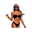 2 Adet/takım Kadın Mayo Seti Bandeau Dolgulu Telsiz Sütyen Yüksek Bel Yüzme Siyah