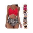 2 Adet/takım Kaliteli Mayo Tel Ücretsiz Backless Leopar Ön Çapraz Bikini Plaj İçin Set Gül Kırmızısı Fuşya