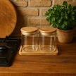 2 Lı 300 Ml Baharatlık Setı- Bambum Altlıklı- Bambu Sılıkon Kapaklı Beyaz