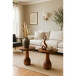 2 Li Doğal Masif Ahşap Yan Sehpa Seti Meşe Renk Zigon Fiskos Meşe
