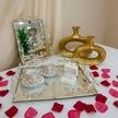 2 Li Gold Renk Aynalı Dekoratif Tepsi Seti Beyaz- BB030