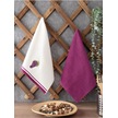 2 Li Mutfak Havlusu Mor Renk Üzüm Nakışlı Mor
