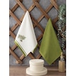 2 Li Mutfak Havlusu Seti - Ekru Ve Yeşil Renk - Zeytin Figürlü Pamuk 40x60 Cm Yeşil