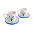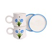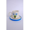 2 Li Takım Mavi Papatya Desenli, El Yapımı Kazan Seramik Kahve Fincanı, Kahve Fincanı, Hand Made Beyaz