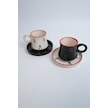 2 Li Takım Siyah Beyaz Kiraz Desenli El Yapımı Kazan Seramik Kahve Fincanı, Kahve Fincanı Beyaz