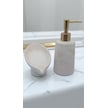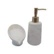 2 Li Taş Banyo Seti Beyaz - Kahverengi Mermer Desenli Aıvı Sabunluk Ve Giderli Katı Sabunluk 18 Cm Beyaz