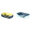 2 Takım Kendinden Yapışkanlı Sabun Sünger Bulaşık Sondaj Yok Saklama Kutusu Raf Raf Çift Drenaj Sabunluklar Sarı Ve Mavi