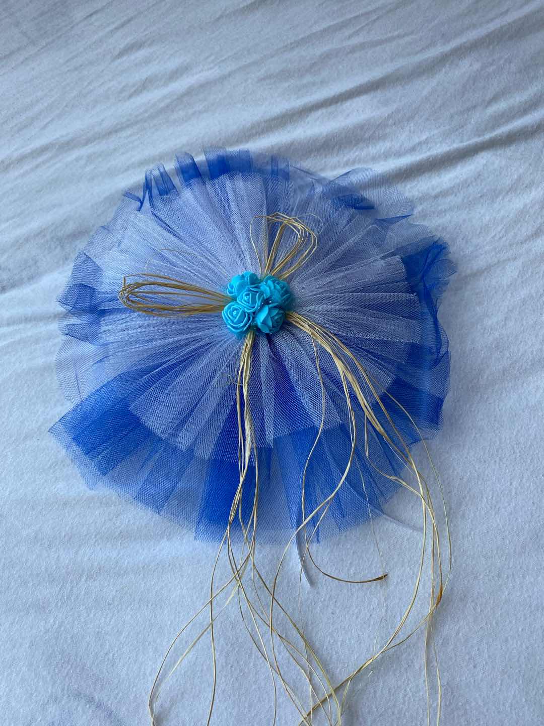 20 Adet Mavi Beyaz Kristal Tül Mavi Lateks Güllü Konvoy Süsü