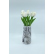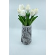20 Cm Mermer Desenli Beton Vazoda Yapay Islak Lale 7 Dal Beyaz Siyahımsı