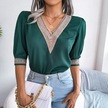 2023 Yaz Gevşek V Yaka Gömlek Bahar Kadın Zarif Dantel Şifon Yarım Kollu Bluz Casual Kazak Blusas Para Mujer Tops 25127 Siyah