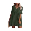 2024 Kadın Yaz Yeni Şifon Bol Kesim Büyük V Yaka Elbise Trendi Askeri Yeşil