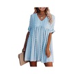 2024 Kadın Yaz Yeni Şifon Bol Kesim Büyük V Yaka Elbise Trendi Mavi