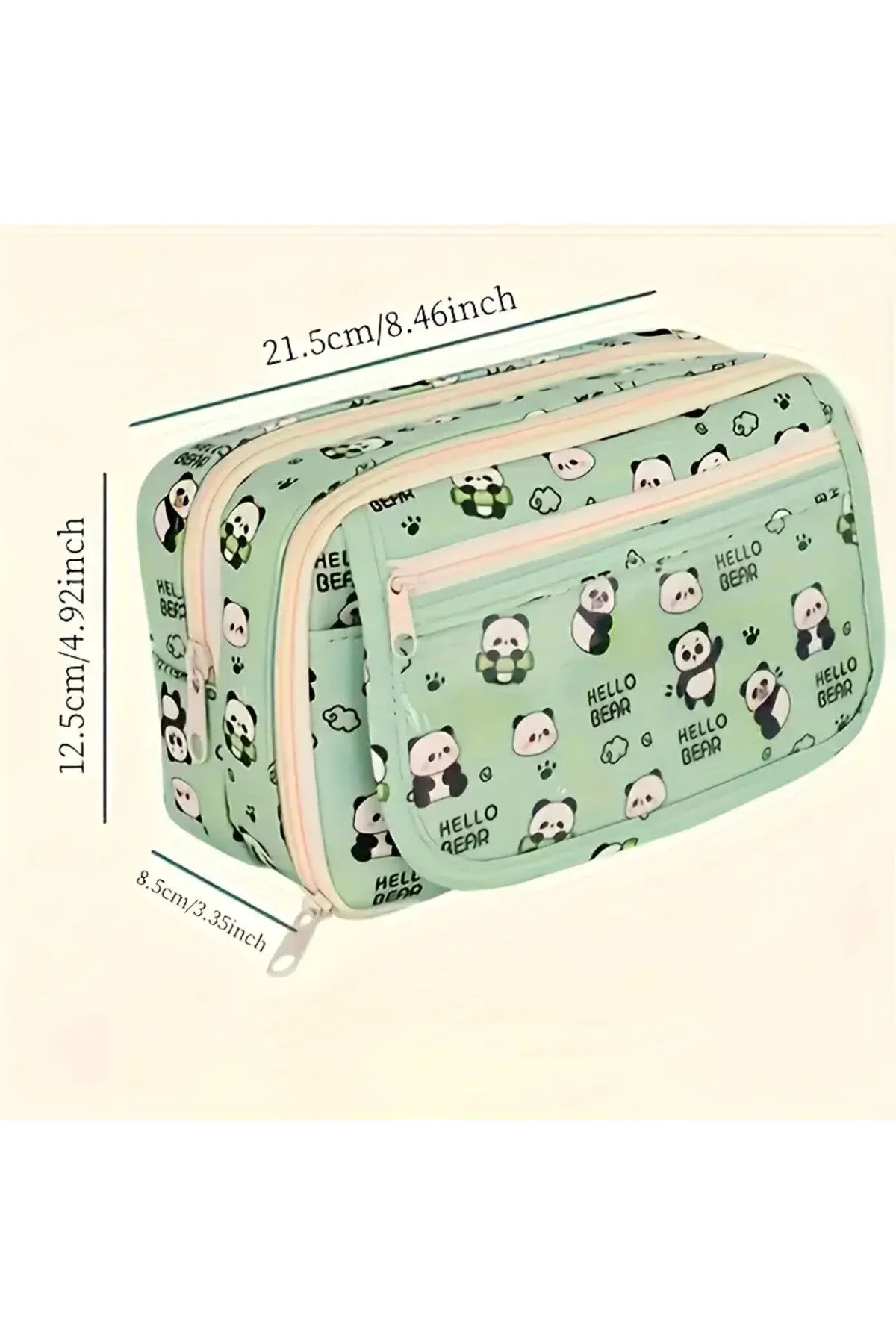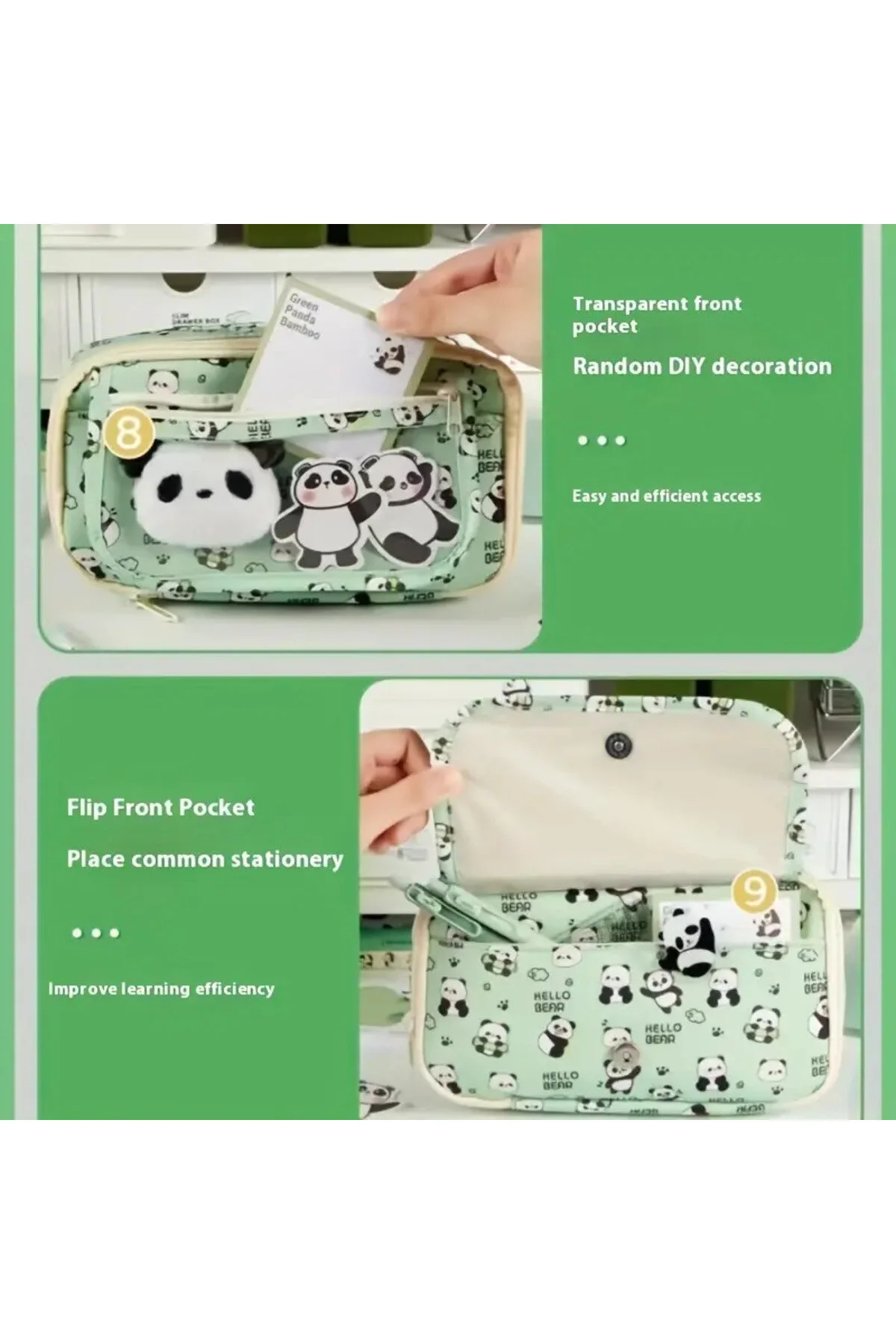 2025 Yeni - Panda Kalem Kutusu Peluş Bir Broş+ Bebek+5 Det Stickers+2 Klip Yeşil