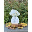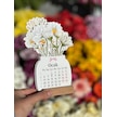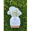 2026 Ahşap Ayaklı Çiçekli Mini Özel Tasarım, Masaüstü Takvim, Papatyalı Çiçek Buketi - Yeni Yıl