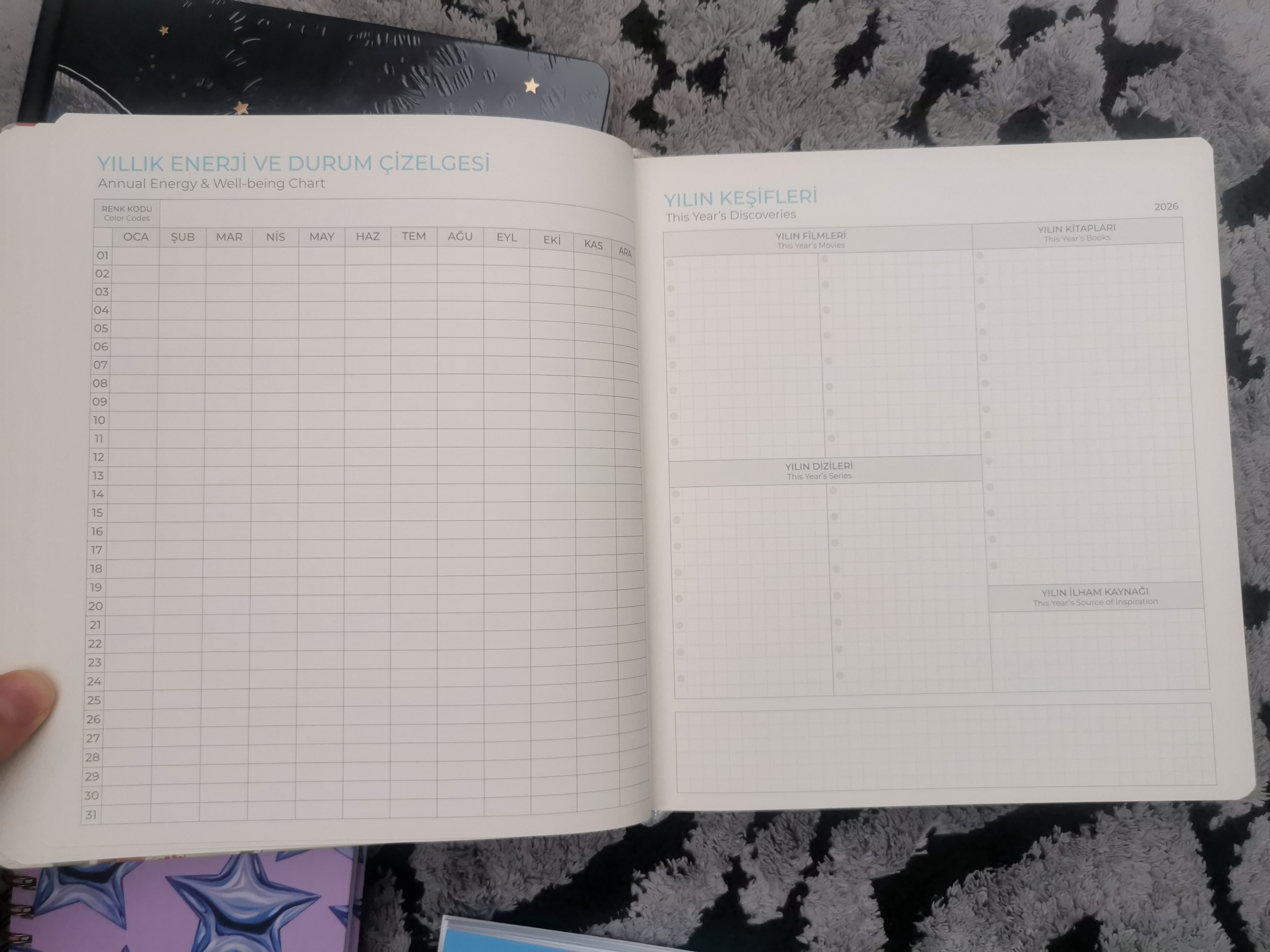 İki tane ajanda aldım.İçeriği tam istediğim gibi. Bence çok güzel düşünülmüş.Geleceğe mektup,yıllık değerlendirme,yılın keşifleri,yıllık enerji durumu çizelgesi,bütçe takibi,yıllık alışkanlık takibi,yıllık hedefler,hareket planı, kişisel gelişim,yıllık plan,özel günler, vizyon panosu bu kısımlar ajandanın girişinde yer alıyor en kısımlarda da boş kareli sayfalar var. Her ajanda için not defteri hediye etmişler. Çok teşeklür ederim. Ayrıca sipariş ettiğim gün kargoya verildi ertesi gün elimdeydi.