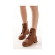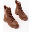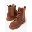 2051-298 Taba Düz Topuklu Bağcıklı Lastikli Günlük Kadın Bot Acı Kahverengi