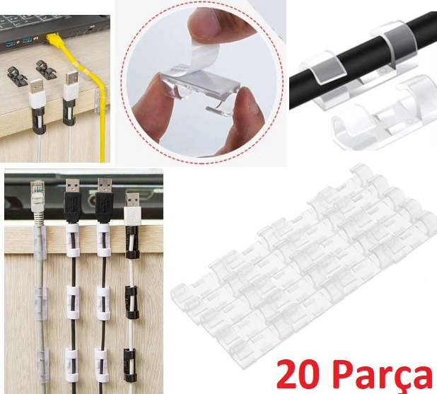 20& Apos Li Yapışkanlı Kablo Sabitleyici Şeffaf Klips 4741