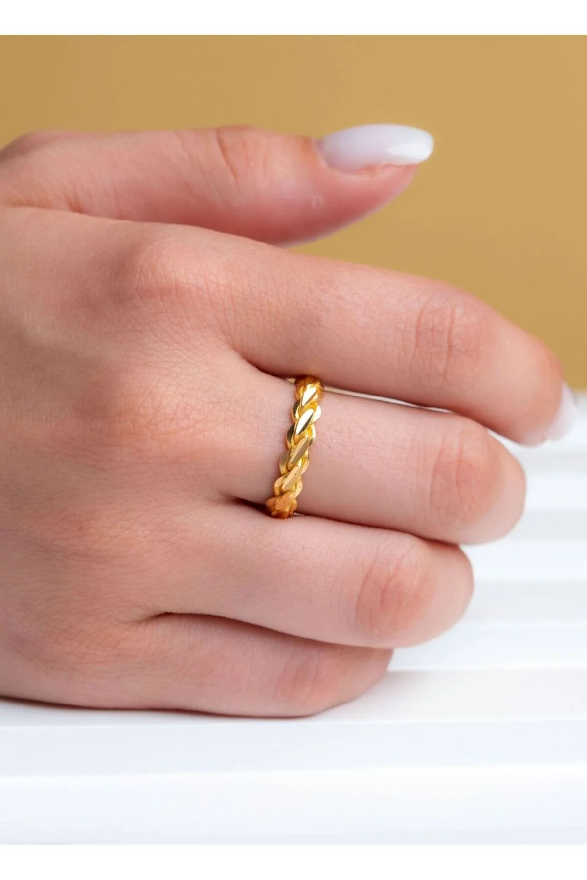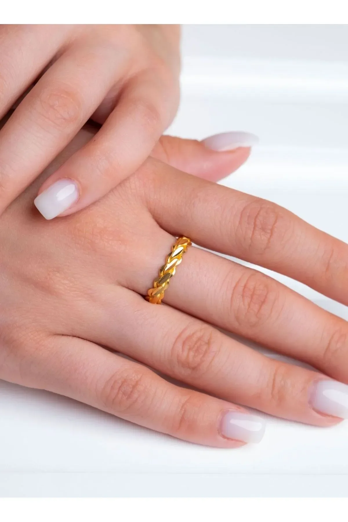 22 Ayar Altın Kaplama Burma Model Yüzük 0258 Altın
