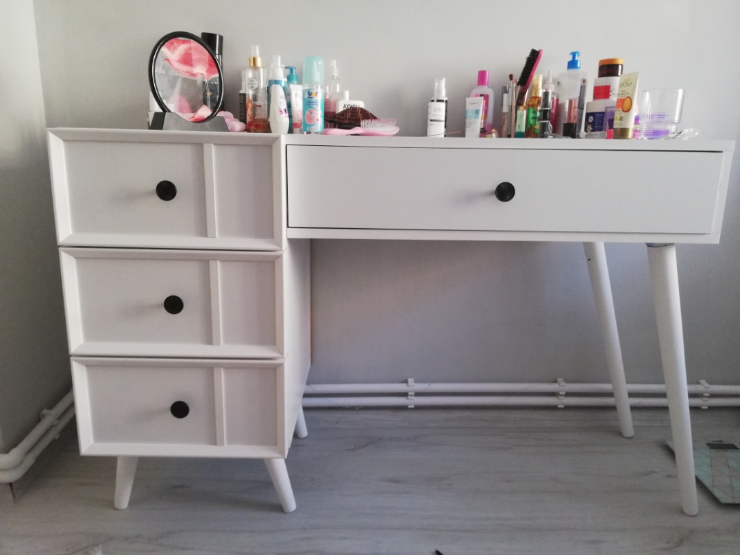 2250 Rose Aynalı Ahşap Ayaklı Mdf Çerçeveli Makyaj Masası Beyaz