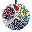 23 Cm Çap - İznik Çini Desen Çiçek Motifli Füzyon Cam Duvar Süsü