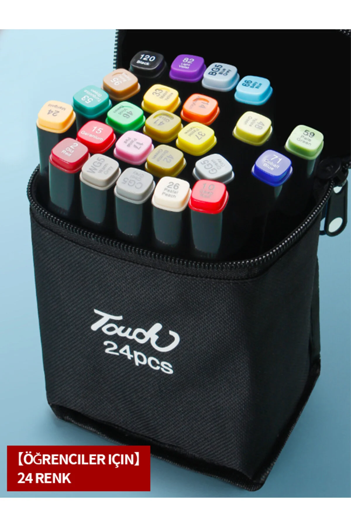 24 Renkli Çift Uçlu Kalın/ince Uçlu Keçeli Marker Seti - Profesyonel Çizim Ve Boyama