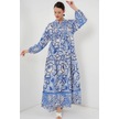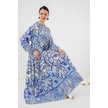 2423 Otantik Desenli Tesettür Elbise - Koyu Mavi Koyu Mavi