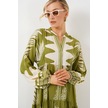 Kadın Önü Yazılı Taşlarla Süslenmiş Haki Elbise-668 Haki