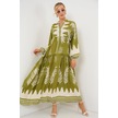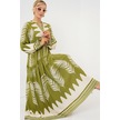 2423 Otantik Desenli Tesettür Elbise - Mint Yeşili Mint Yeşili